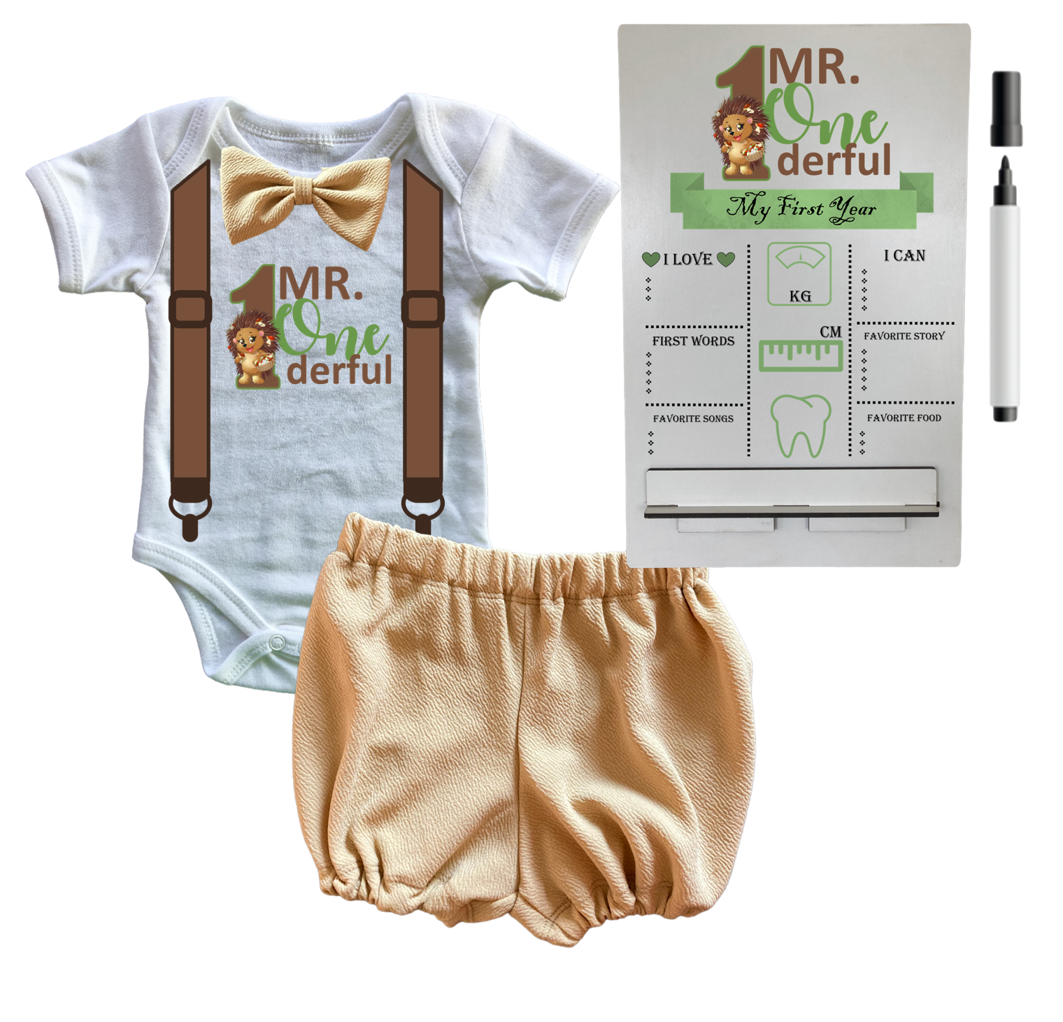 1st Birthday | Bubble pants & Bowtie vest | Milestone sign | Stone | Mr One’derful