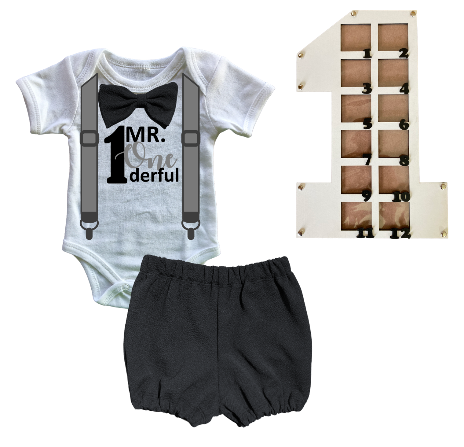 1st Birthday | Bubble pants & Bowtie vest | Photo Frame | Black | Mr 1’derful