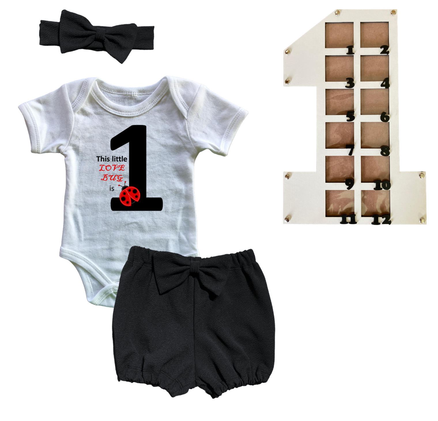 1st Birthday | Bubble Shorts, vest & Headband | Photo Frame | Black | Little Love Bug