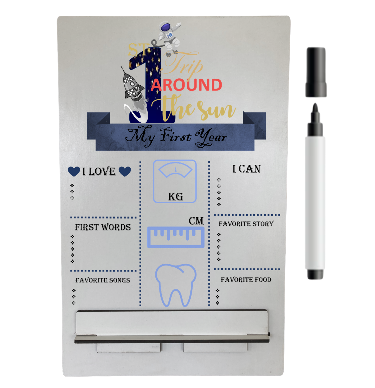 Update your babies key milestones and place the board at their birthday party or for their photoshoot.