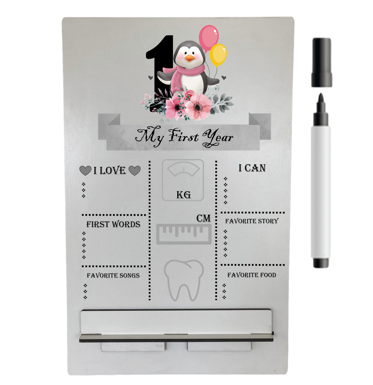 Update your babies key milestones and place the board at their birthday party or for their photoshoot.