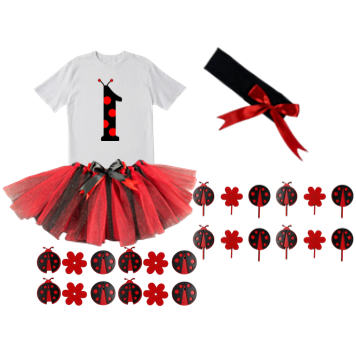 1st Birthday Party Lady Bug Tutu Cupcake Toppers & Lollipop Holders | 1