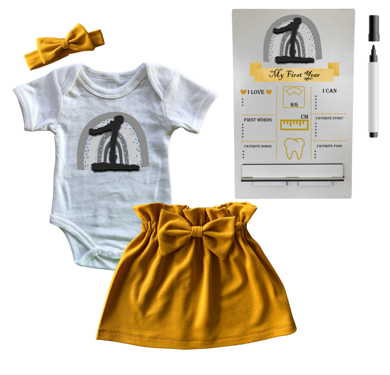 1st Birthday | Skirt, vest & Headband | Milestone sign | Mustard | Rainbow 1