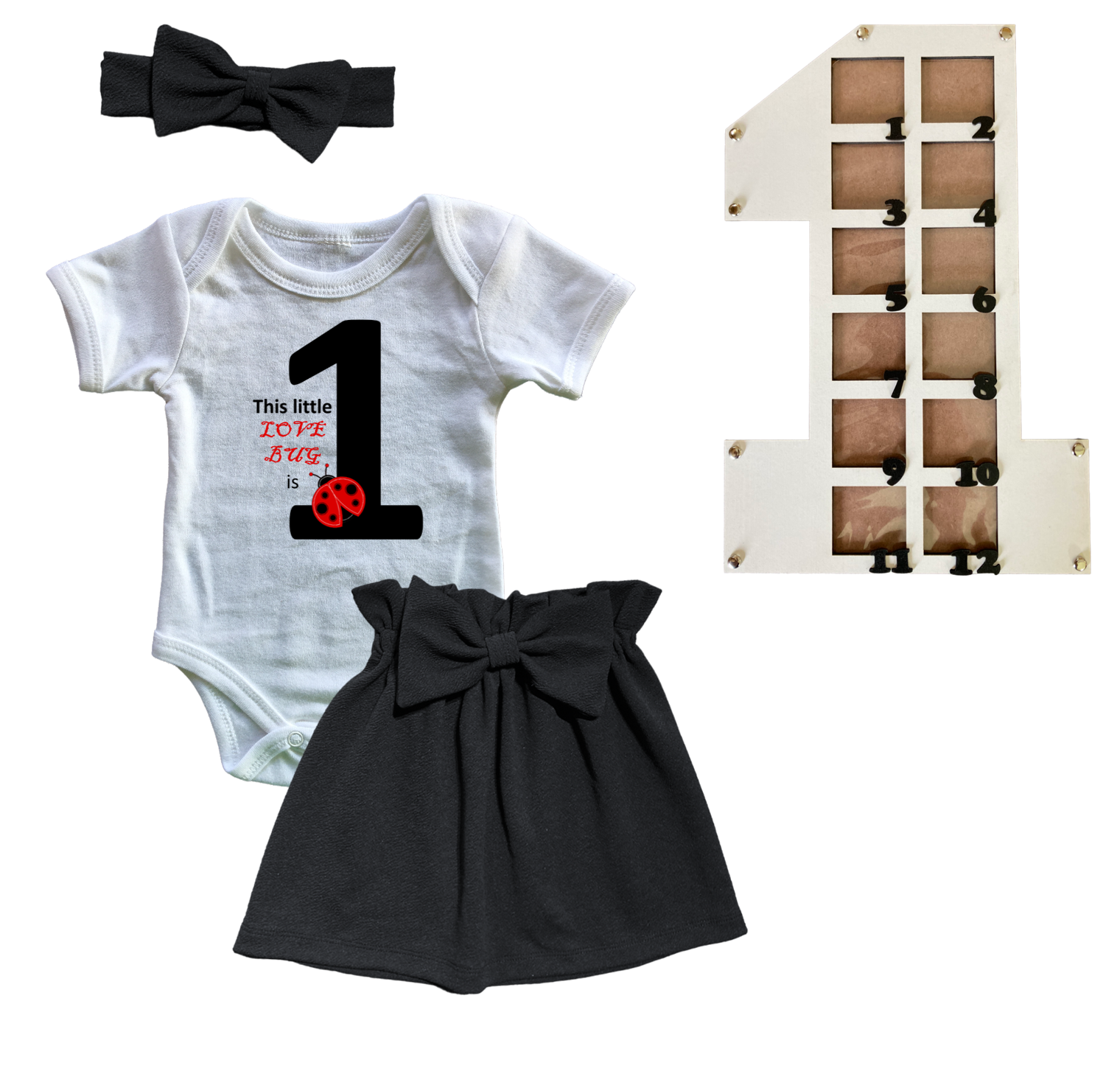 1st Birthday | Skirt, vest & Headband | Photo Frame | Black | Little Love Bug
