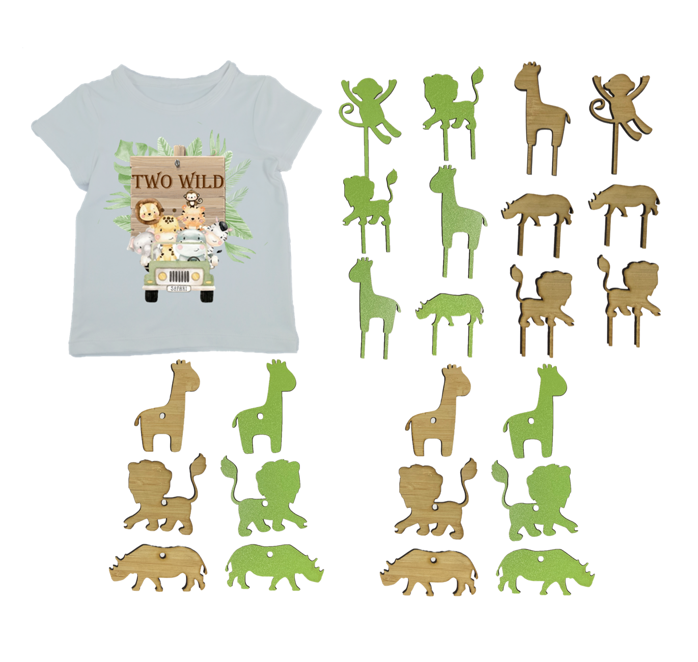 2nd Birthday Combo| Shirt, Lollipop Holders & Cupcake Toppers | Safari / Two Wild