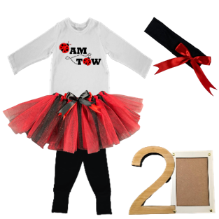 2nd Birthday | Lady Bug Tutu Outfit With Headband And Photo Frame