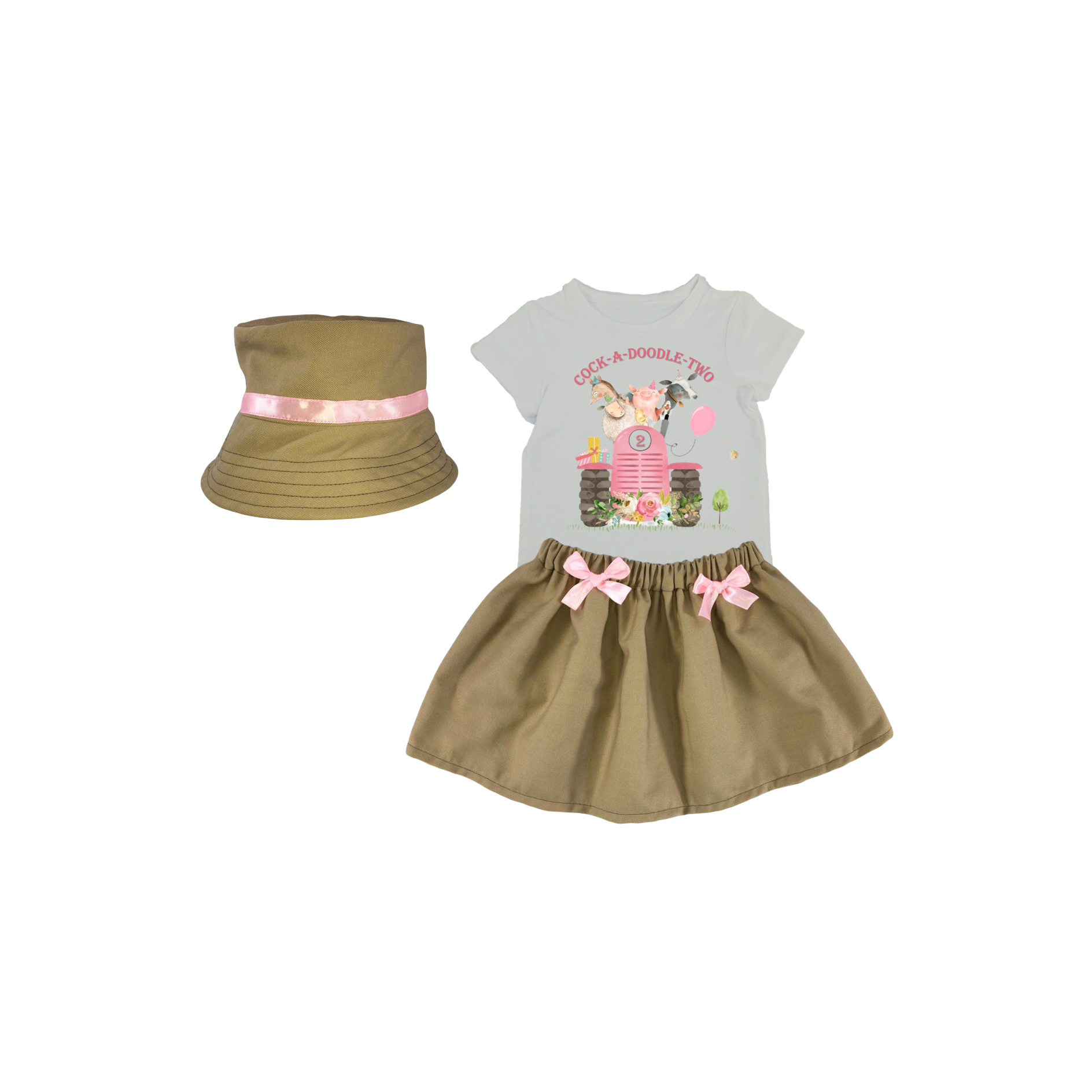 2nd Birthday Outfit with Hat | with Skirt | Girls Farmer Theme | English