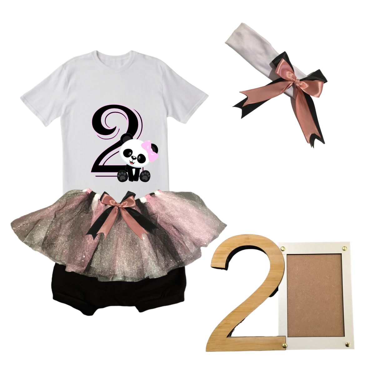 2nd Birthday| Panda Pink Tutu Outfit-Short Sleeve With Photo Frame | 2