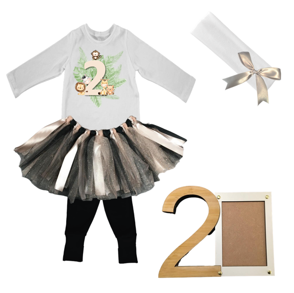 2nd Birthday Safari Tutu With Headband And Photo Frame | 2
