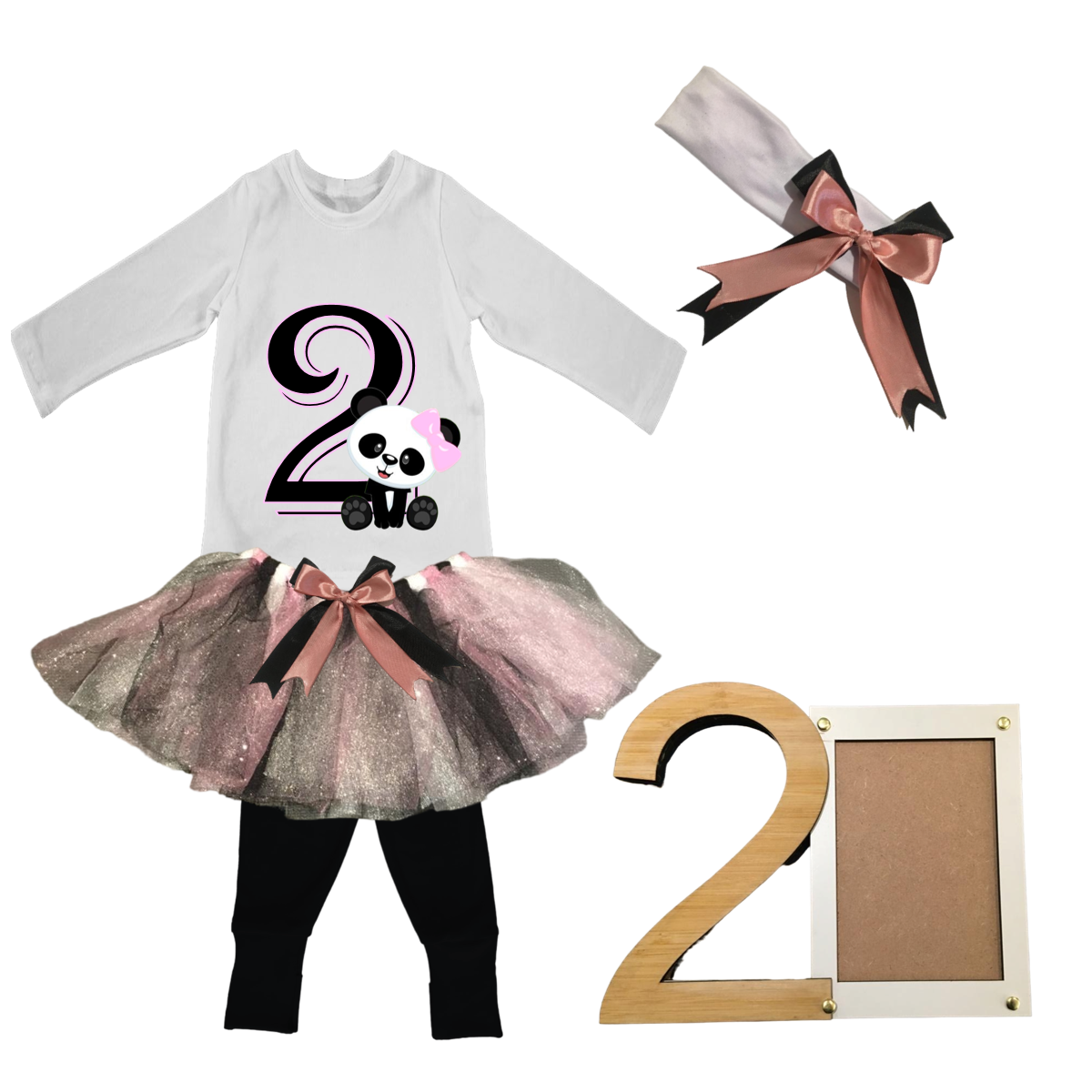 2nd Birthday|Panda Pink Tutu With Headband And Photo Frame |2