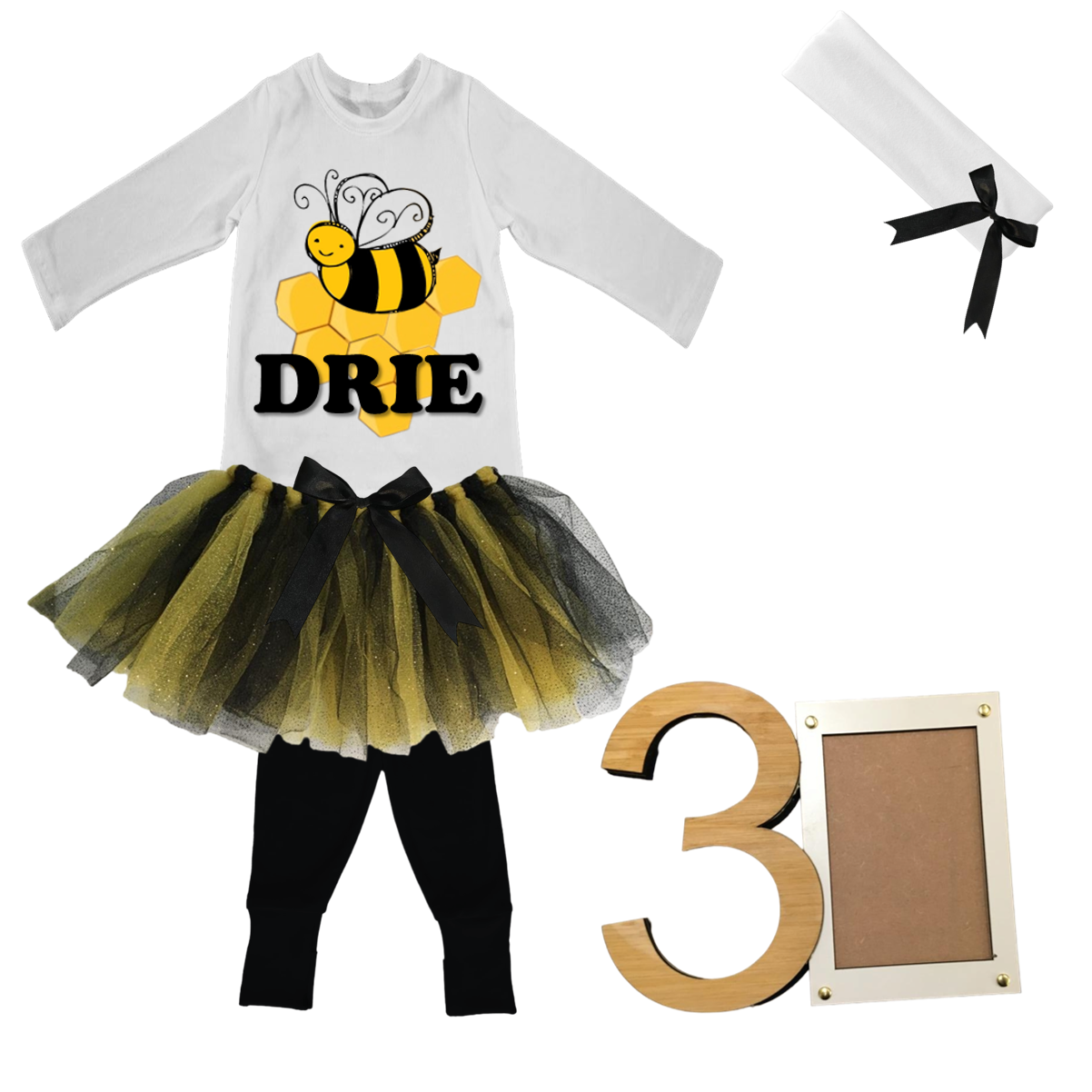 3rd Birthday| Bee Tutu With Headband And Photo Frame | Afrikaans