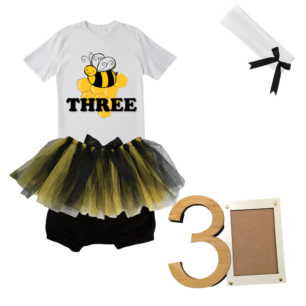 3rd Birthday| Bee Tutu With Headband And Photo Frame