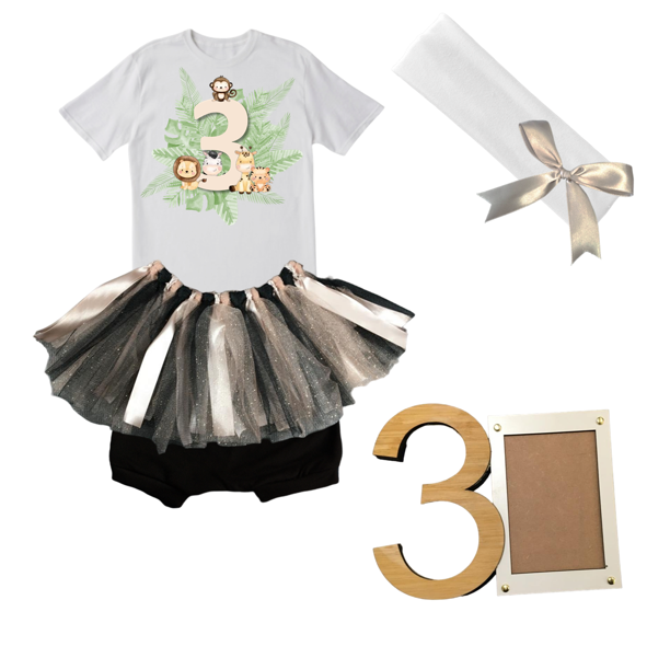 3rd Birthday Safari Tutu With Headband And Photo Frame | 3