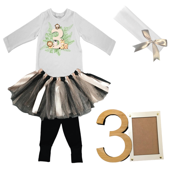 3rd Birthday Safari Tutu With Headband And Photo Frame | 3