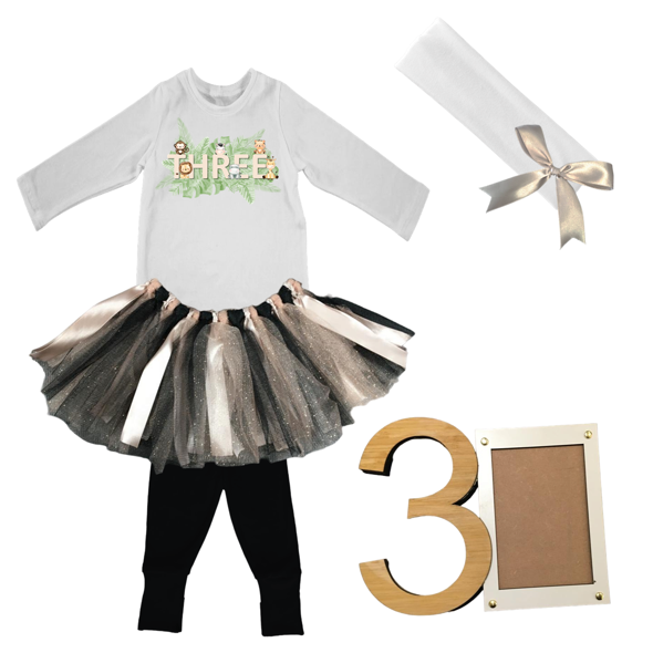 3rd Birthday Safari Tutu With Headband And Photo Frame