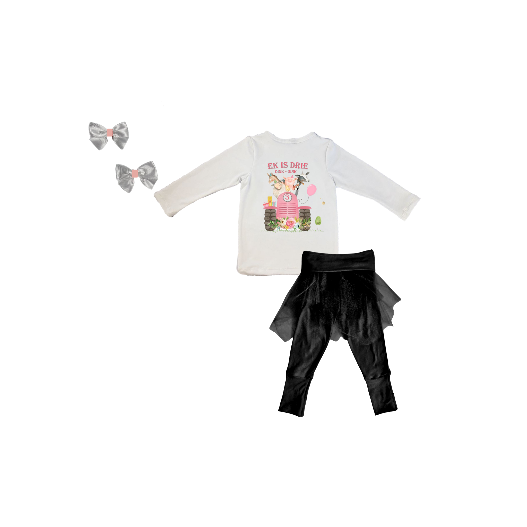 3rd Birthday | Shirt, Pants, Built-In Tutu & Hair Clips | Farmer | Afrikaans