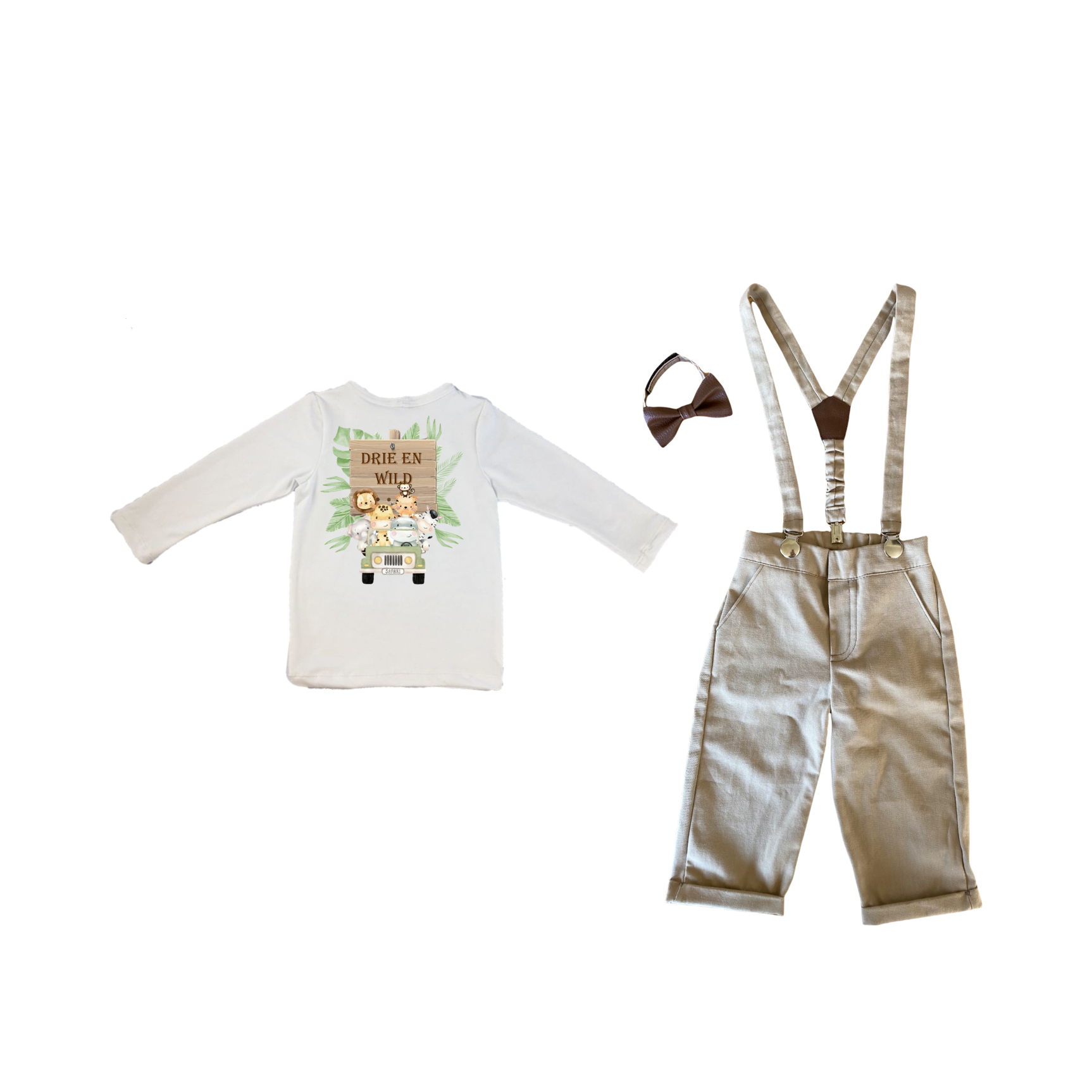 3rd Birthday | White & Stone with suspenders & Bow tie | Wild One | Safari | Afrikaans