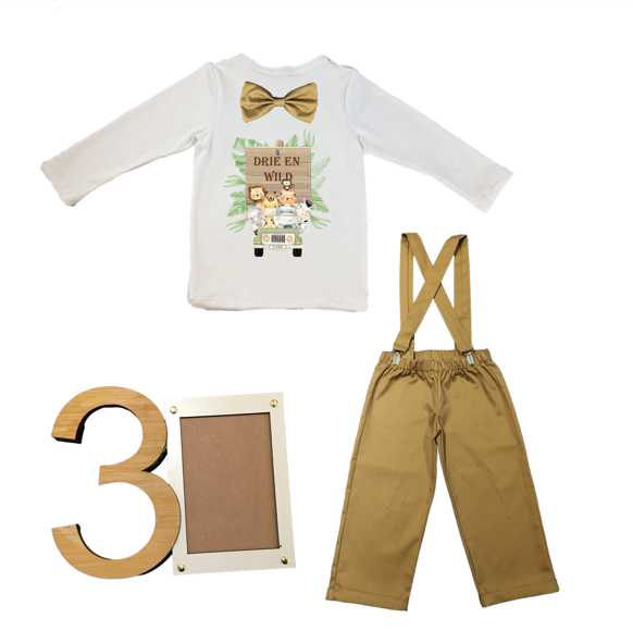 3rd Birthday-Wild One/Safari-White & Stone with suspenders & Bow tie-Afr