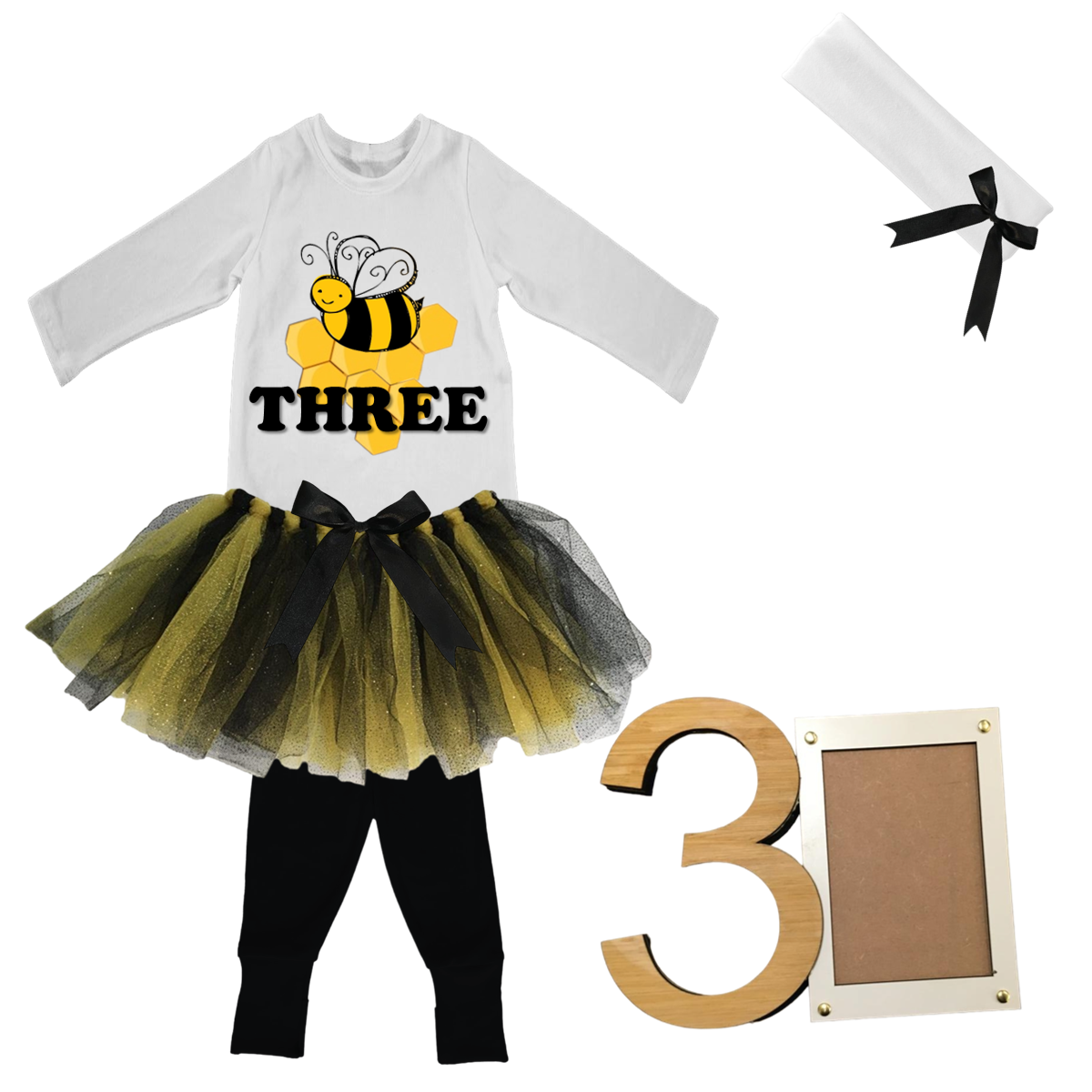 3rd Birthday|Bee Tutu With Headband And Photo Frame