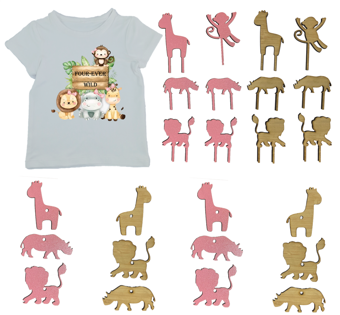 4th Birthday Combo| Shirt, Lollipop Holders & Cupcake Toppers | Four-Ever Wild