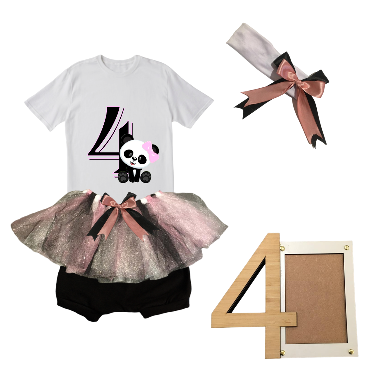4th Birthday| Panda Pink Tutu Outfit-Short Sleeve With Photo Frame | 4