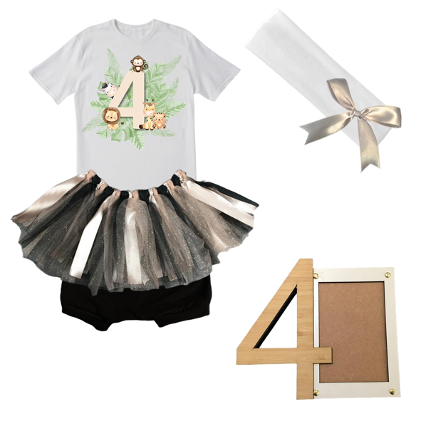 4th Birthday Safari Tutu With Headband And Photo Frame | 4