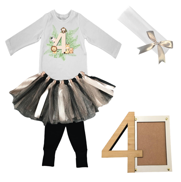 4th Birthday Safari Tutu With Headband And Photo Frame | 4