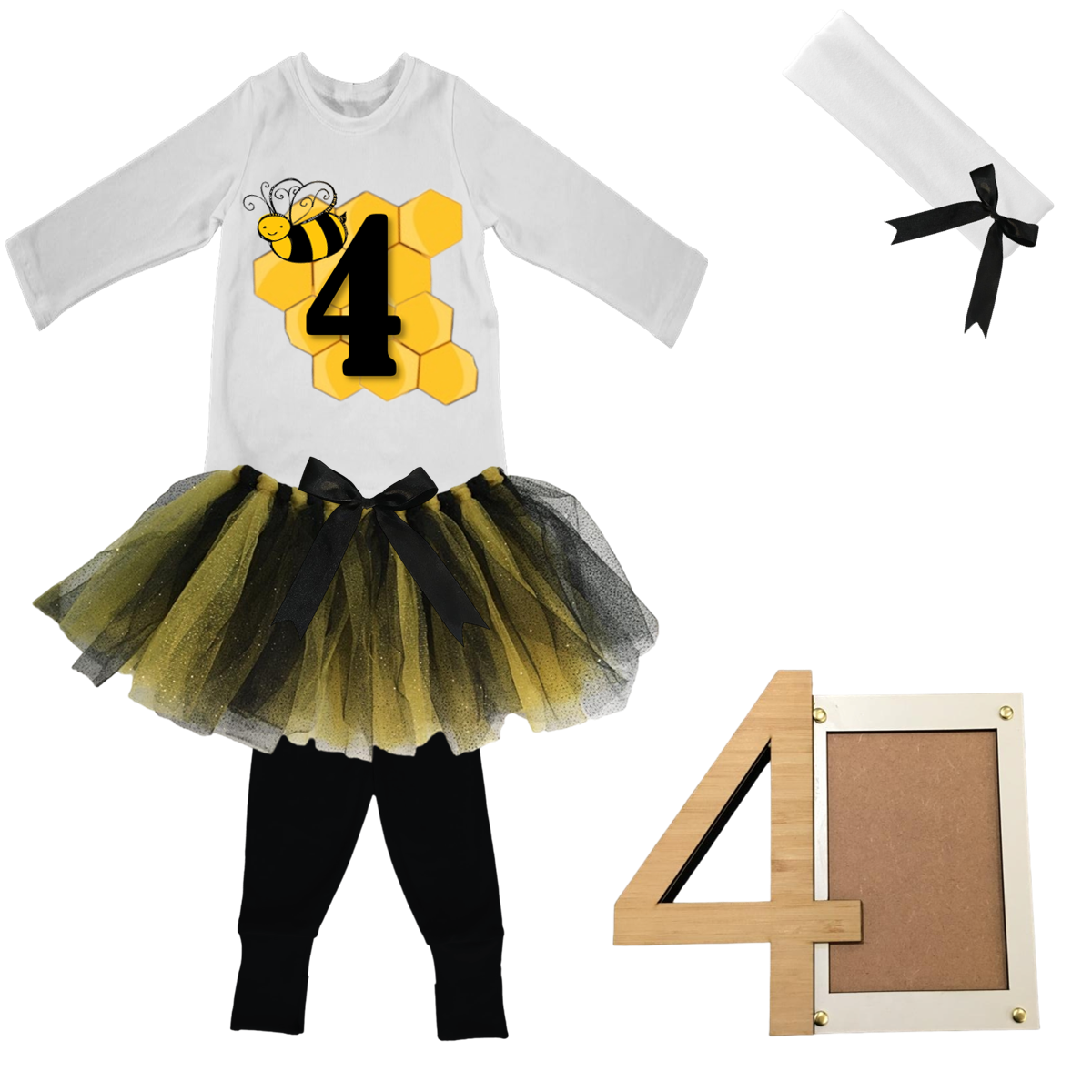 4th Birthday|Bee Tutu Outfit With Headband And Photo Frame | 4