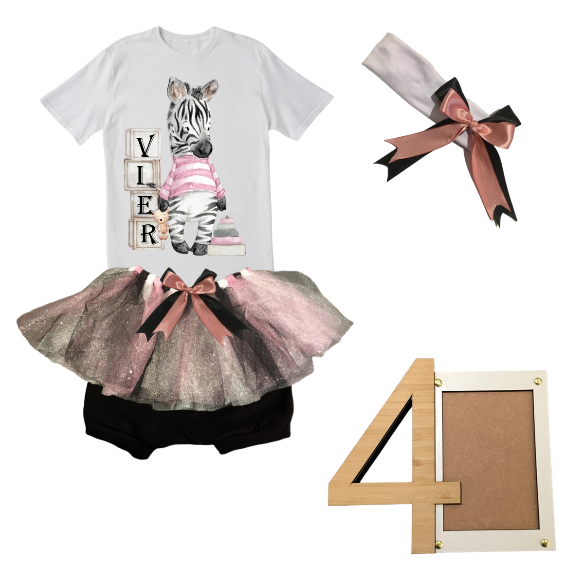 4th Birthday|Pink Zabra Tutu With Headband And Photo Frame | Afrikaans