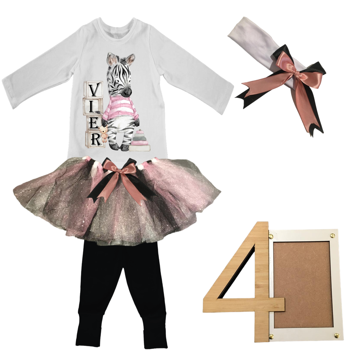 4th Birthday|Pink Zebra Tutu With Headband And Photo Frame | Afrikaans