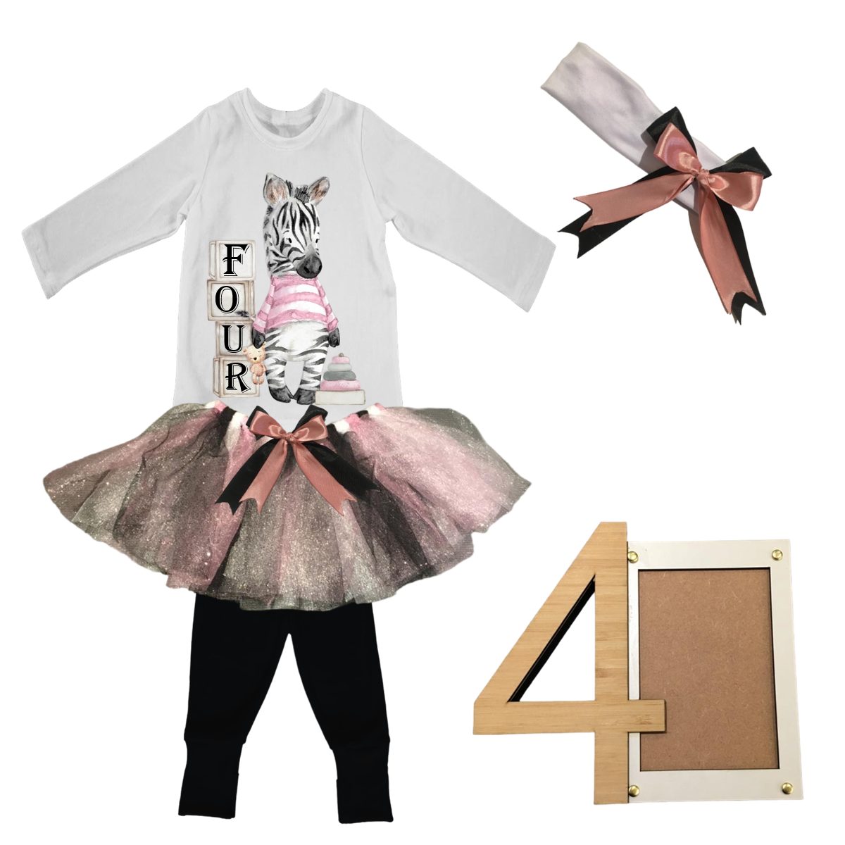 4th Birthday|Pink Zebra Tutu With Headband And Photo Frame
