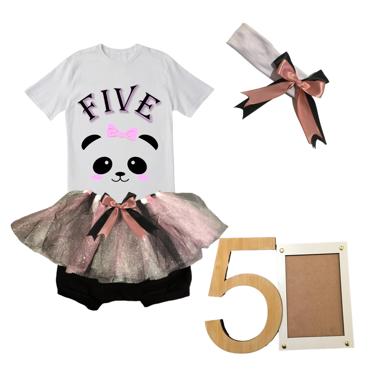 5th Birthday|Panda Pink Tutu With Headband And Photo Frame