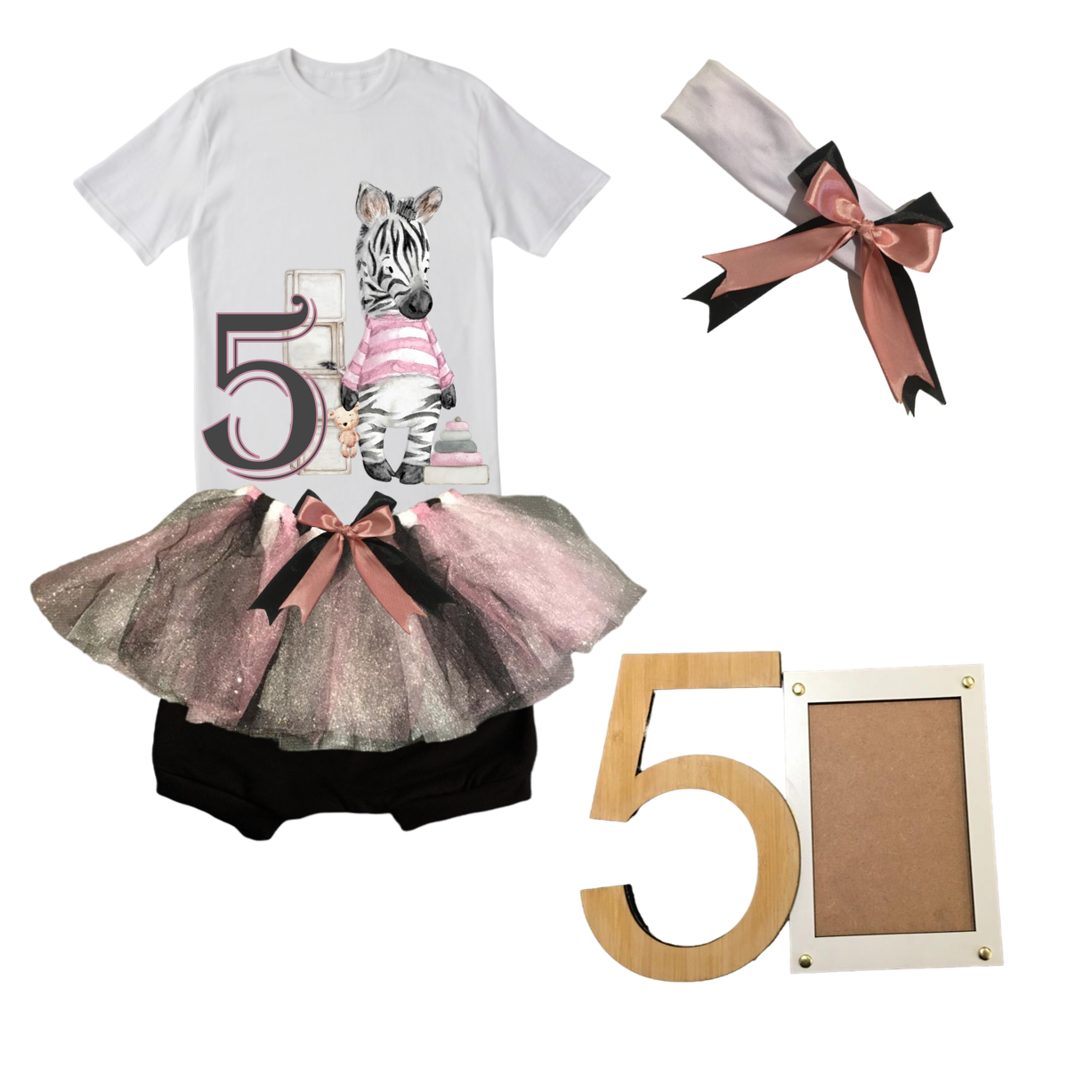 5th Birthday|Zebra Pink Tutu Outfit|Short Sleeve With Photo Frame | 5