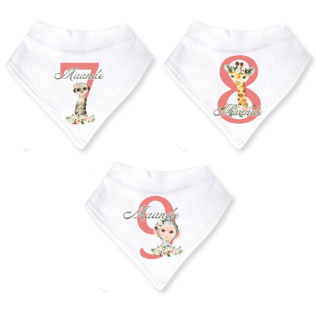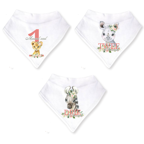 Baby 12 Month Milestone Bib Set | Girls Wild One | Afrikaans