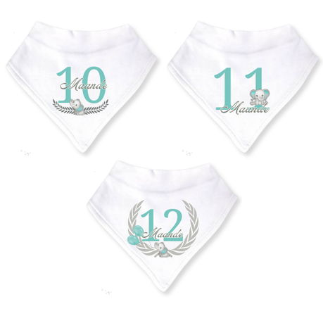 Baby 3 Month Milestone Bib Set | Gender Neutral Elephant 10 | 12m | Afrikaans