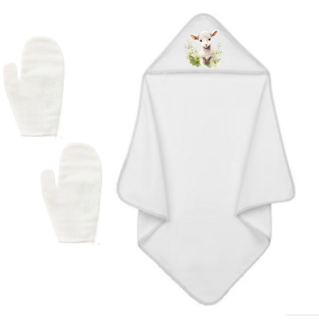 This babyshower gift set includes a hooded baby towel with a mom and dad cloth glove, this helps any new parent to make the bath process much easier by giving them more control by not having to hold a cloth and loose grip on their newborn baby.