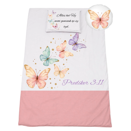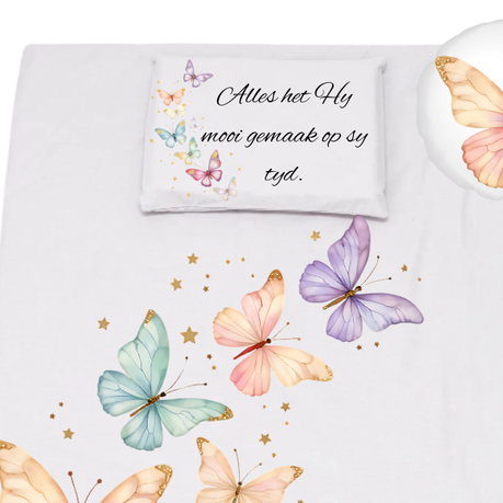Cot Bedding Set | Duvet, Pillow & Scatter | Pastel Butterflies White