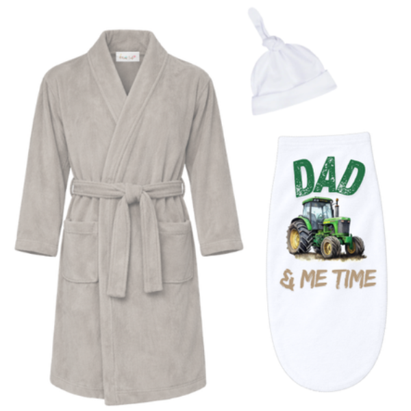 Celebrate the special bond between father and baby with this thoughtfully designed Dad & Me set, featuring a winter gown for dad and a soft swaddle cocoon for baby.