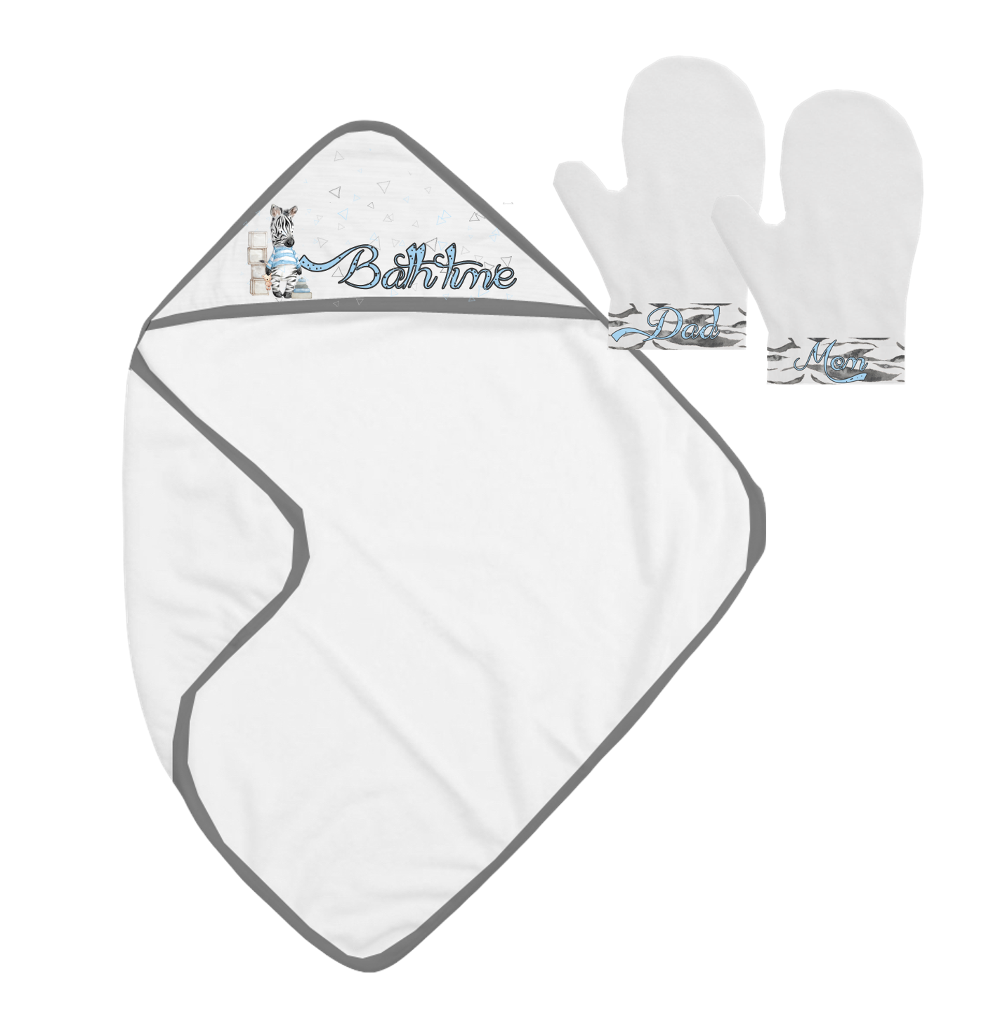 Baby Hooded Towel with Mom and Dad Gloves Gift Set | Blue Zebra