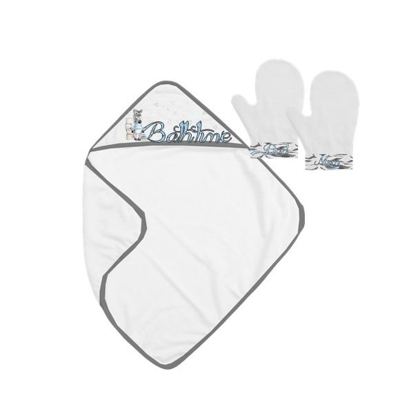 This babyshower gift set includes a hooded baby towel with a mom and dad cloth glove, this helps any new parent to make the bath process much easier by giving them more control by not having to hold a cloth and loose grip on their newborn baby.