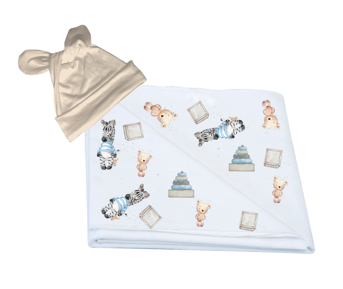 This babyshower gift set includes a hooded baby towel with a mom and dad cloth glove, this helps any new parent to make the bath process much easier by giving them more control by not having to hold a cloth and loose grip on their newborn baby.