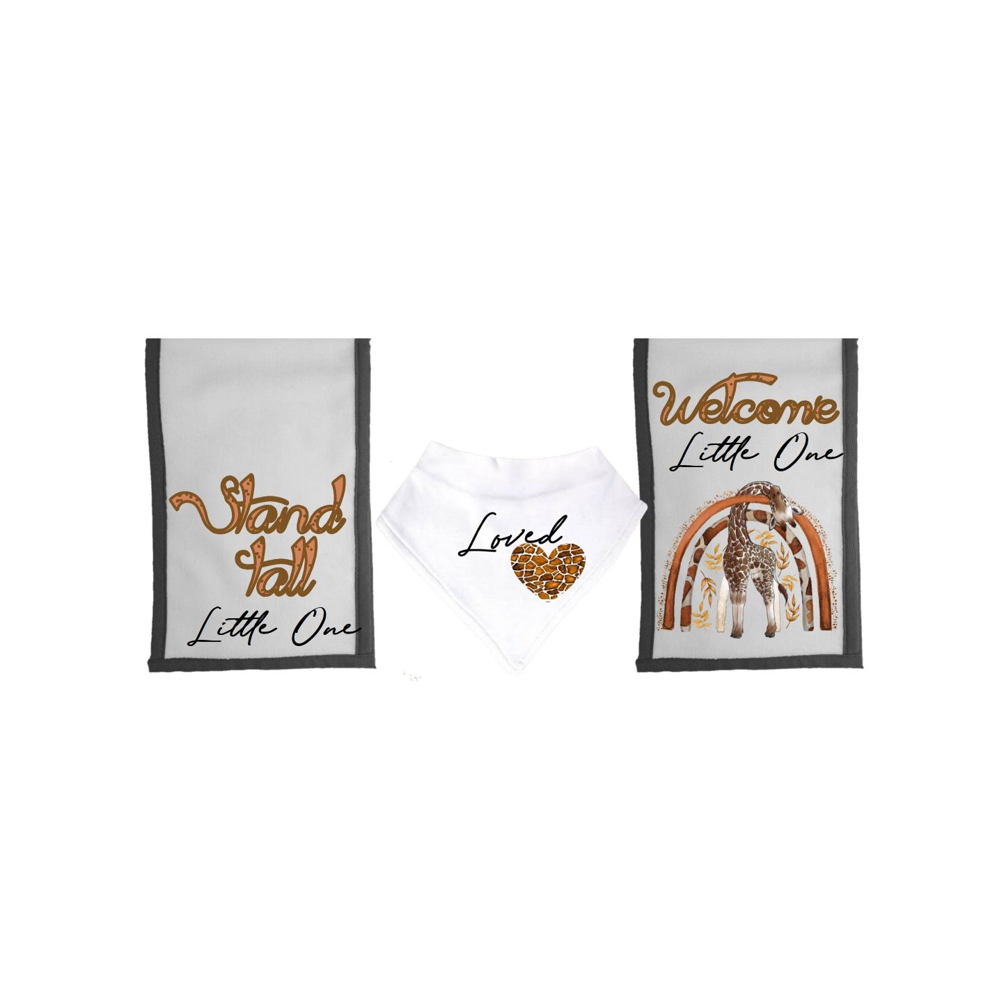 This babyshower gift set includes a hooded baby towel with a mom and dad cloth glove, this helps any new parent to make the bath process much easier by giving them more control by not having to hold a cloth and loose grip on their newborn baby.