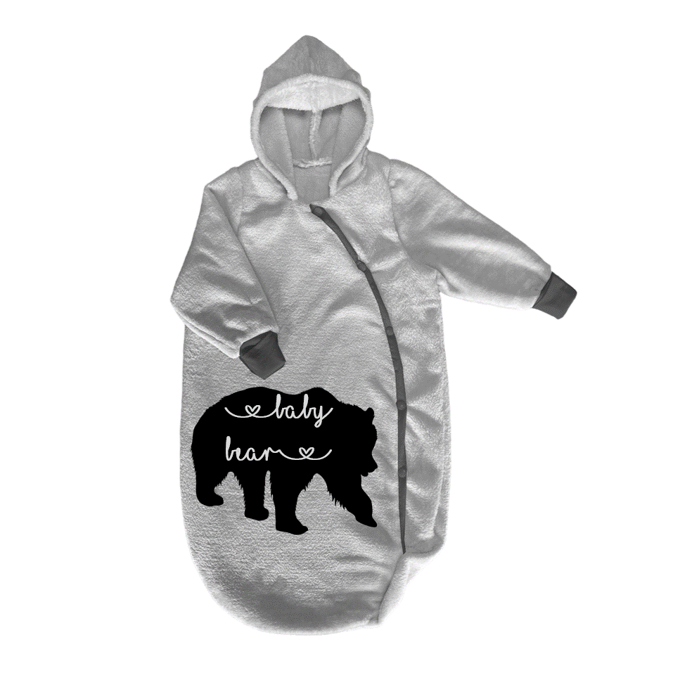Baby/Toddler Sleeping Bag with Fold Over Mittens | Light Grey with Black | Baby Bear