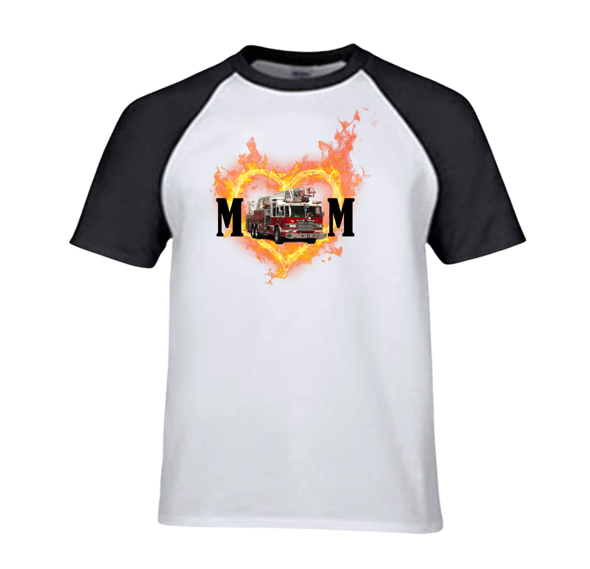 Fire Truck theme| Ladies Shirt | White & Black | Long or Short Sleeve | Mom | English