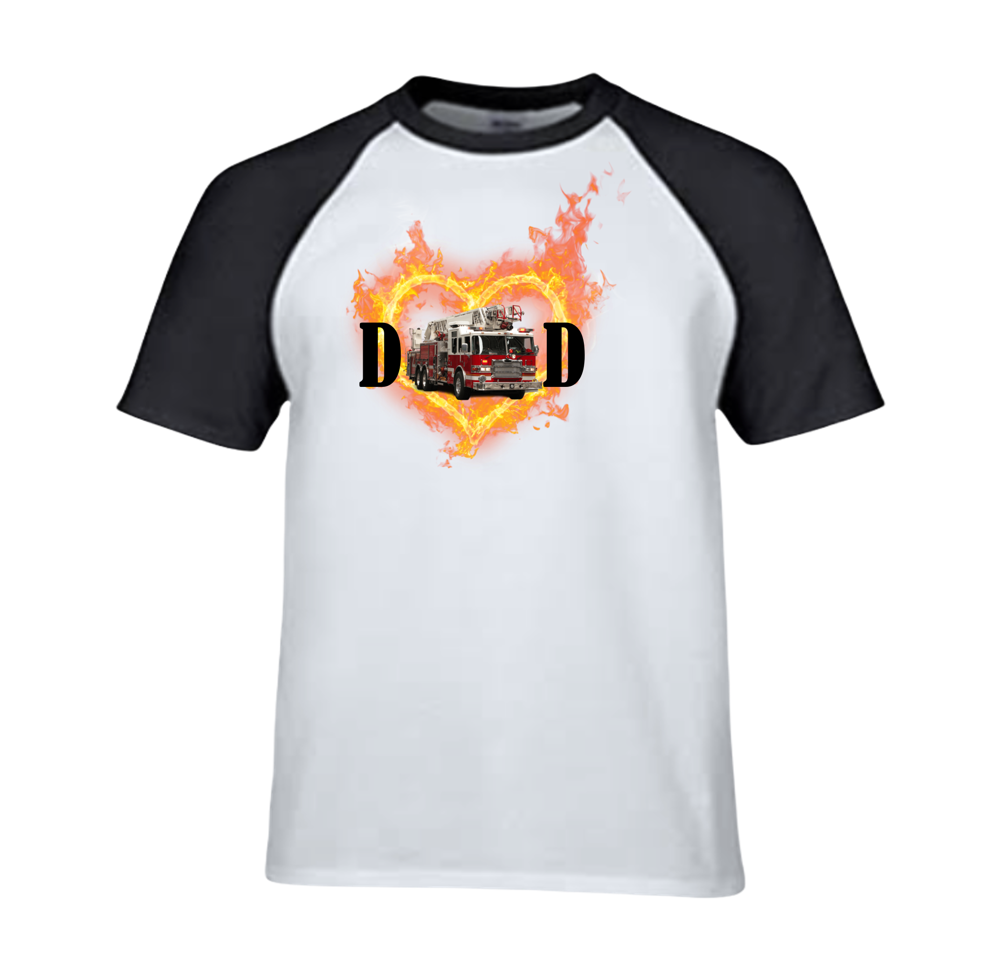 Fire Truck theme| Men’s Shirt | White & Black | Long or Short Sleeve | Dad | English