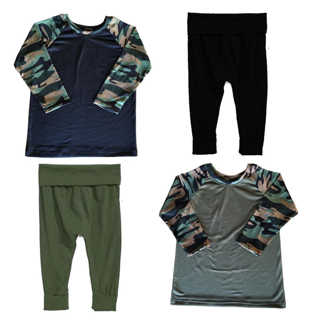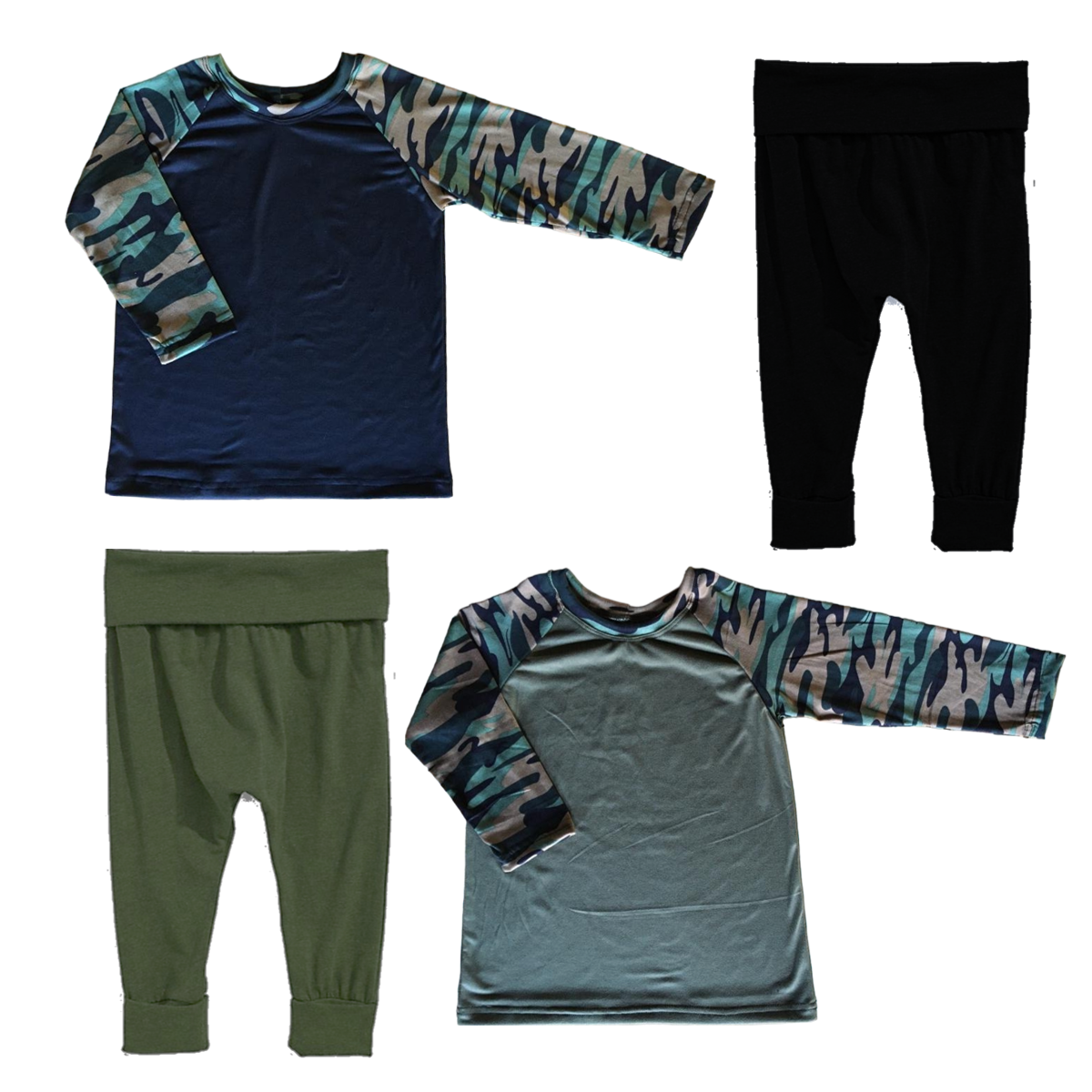 Fold Over Cuff Green Camo Pajama Set |4 Piece – Black & Green Two Tone