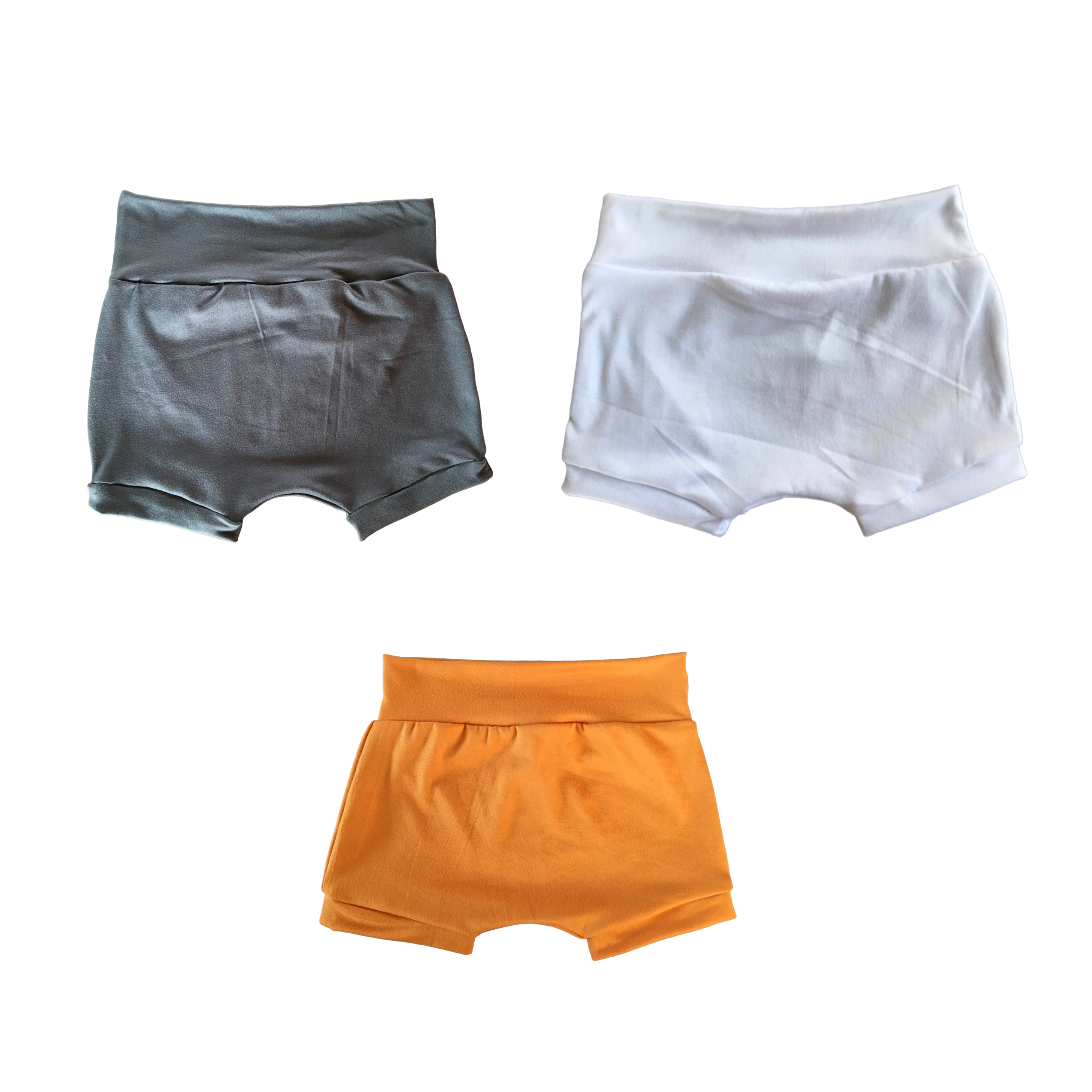 Harem Baby Shorts 3 Piece Bundle | Nappy Cover | Grey, White & Mustard