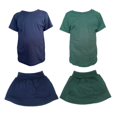 Kids | Soft & Comfy | Day & Night Play Combo | T-Shirt & Skort | Navy & Botanic green