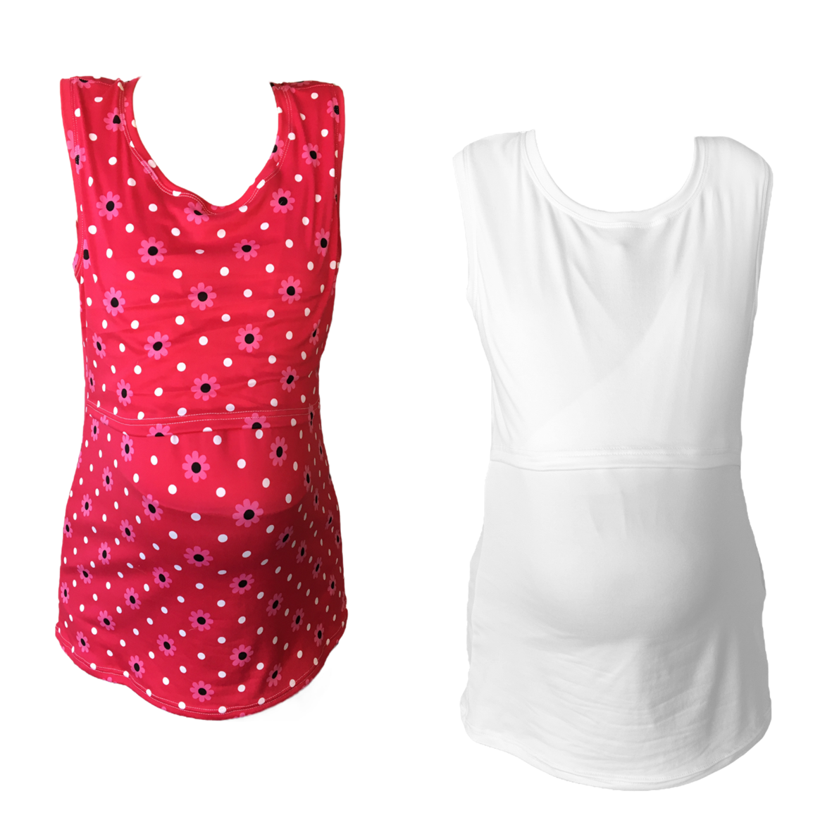 Maternity & Breastfeeding Tank Top | Up to 6XL | 2 Pack | Pink with Pink Flowers & White