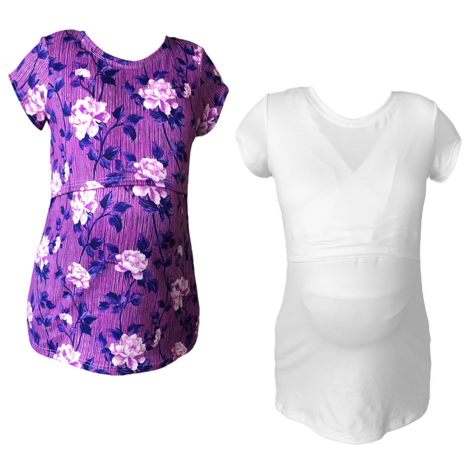 Maternity & Breastfeeding Top | Cap Sleeve | 2 Pack | Up to 6XL | Purple Floral & White